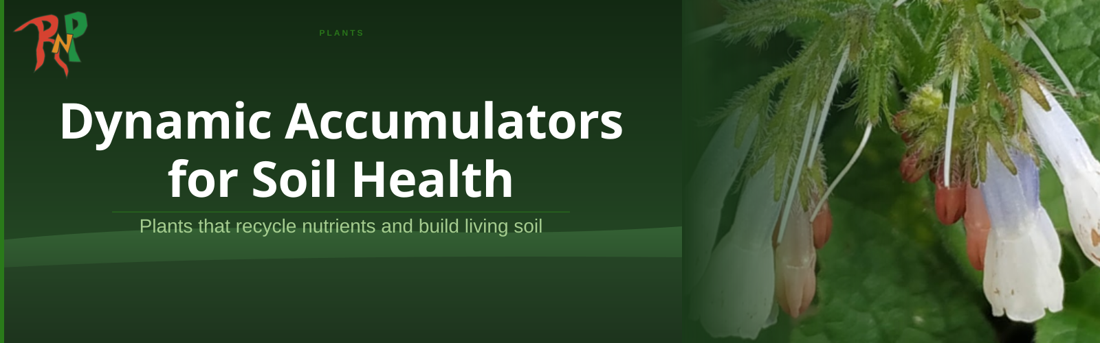 In permaculture systems dynamic accumulator plants help support nutrient cycling, soil fertility, and long-term ecosystem productivity.