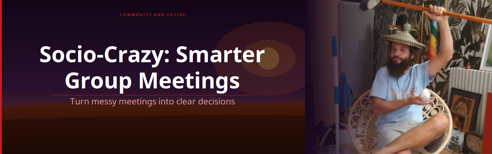 Socio-Crazy is a practical variation of sociocracy designed to support clear and effective meetings. It works particularly well for informal groups and volunteer networks, while remaining useful for organisations of any size.